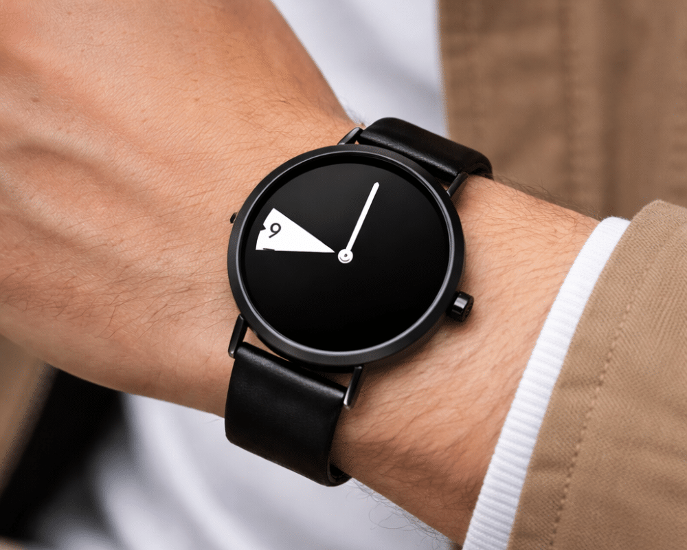With its matte black face, singular hour wedge, and ultra-clean layout, Chroma Time reduces time to its most essential form. The slim silhouette and smooth leather strap create a quiet, graphic presence, made for those who prefer intention over excess and design that speaks without noise.
