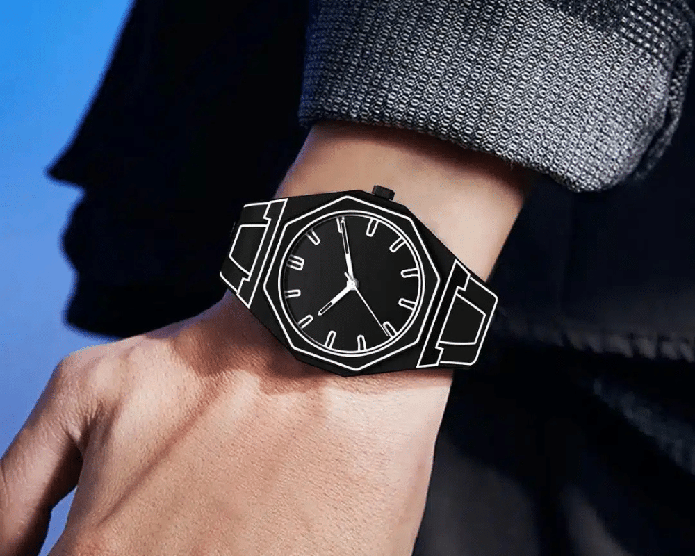 With its matte black body traced by sharp white contours, Kiva 2D Skeleton feels more like a design object than a traditional watch. The geometric case and stripped-back dial create a futuristic presence, made for those drawn to visual contrast, structure, and form that stands apart.