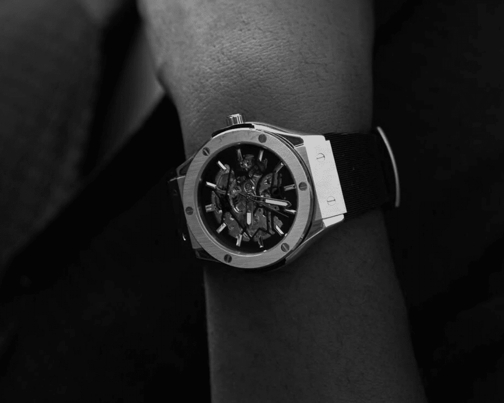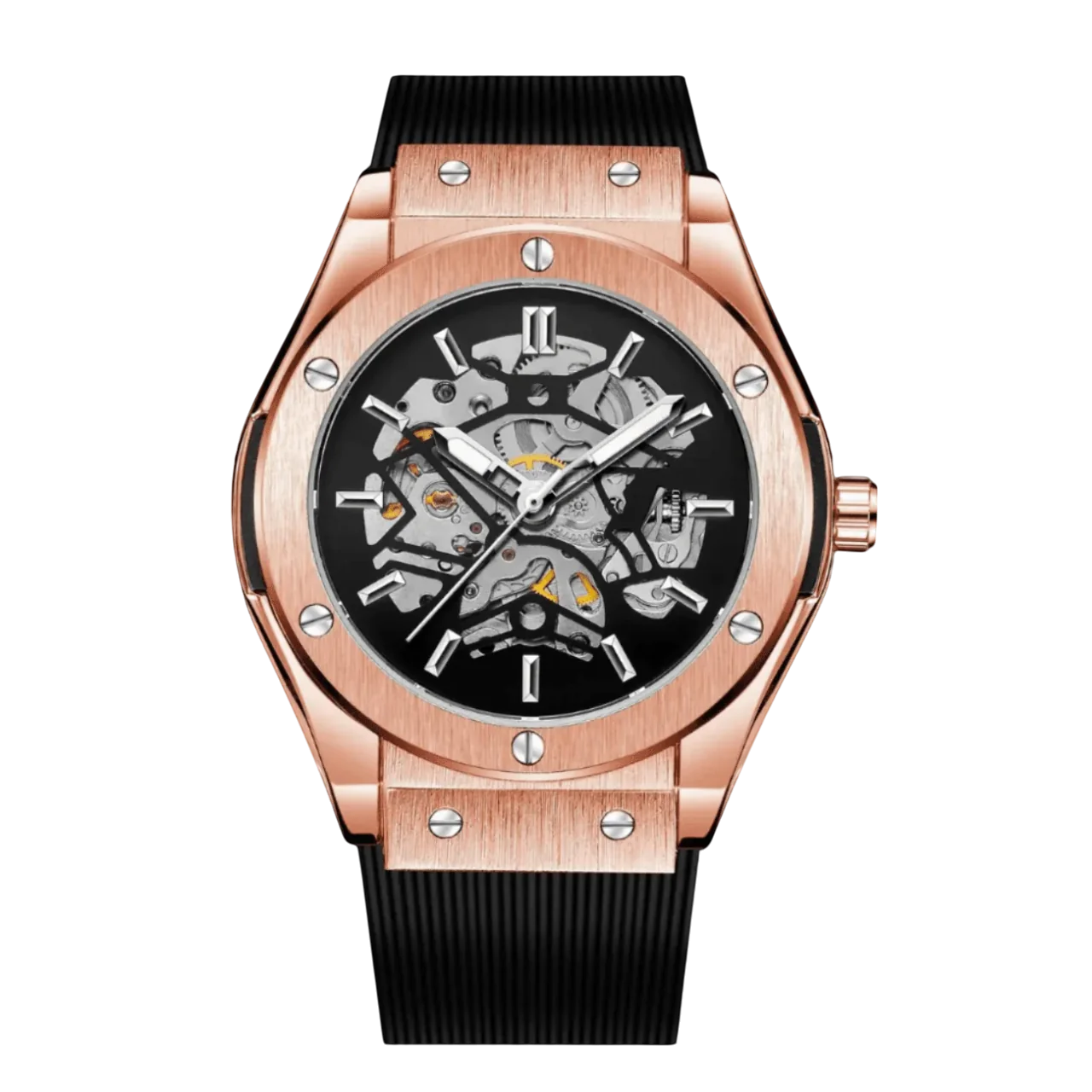 The Lunar Slate blends exposed mechanical design with a brushed steel case and a refined black profile. Featuring a skeleton dial that reveals its inner movement, it delivers a bold yet understated presence. Finished with sapphire crystal and an automatic mechanical engine, it’s built for those who value precision, structure, and modern craftsmanship.